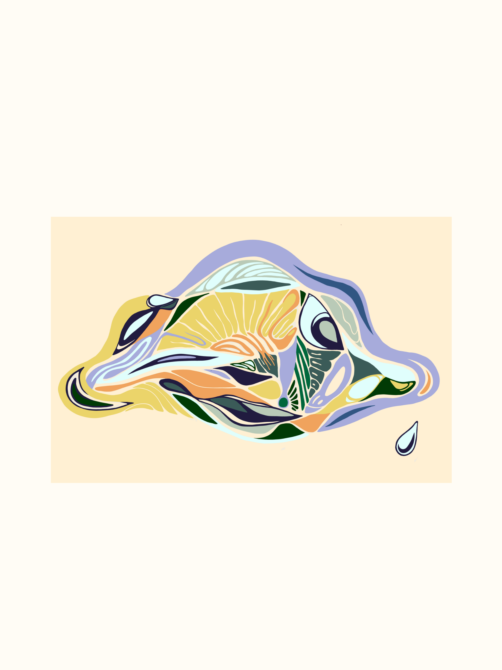 Comme un œil qui s’ouvre sur l’invisible, ou un nuage qui se dilue dans la lumière, cette œuvre numérique abstraite explore les zones floues de la mémoire, de l’intuition, du rêve.