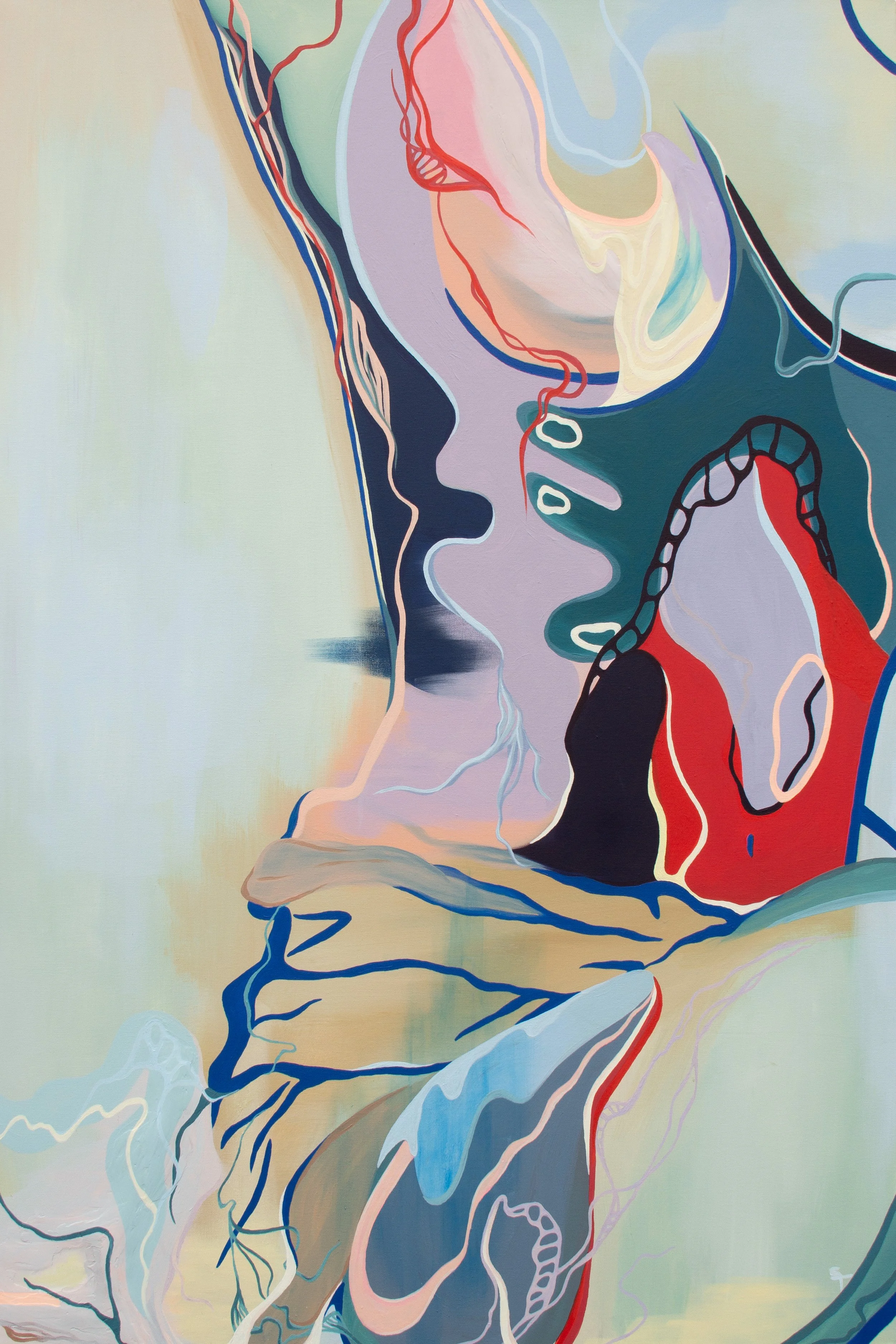 À mi-chemin entre l’abstraction et la figuration, cette œuvre explore la vitalité et la pulsation intérieure.